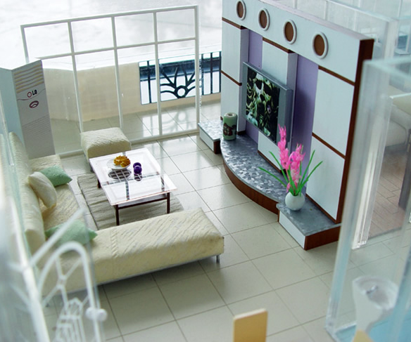 采用透明亞克力制作、內(nèi)部按比例制作家私布局、達到真實仿真效果。