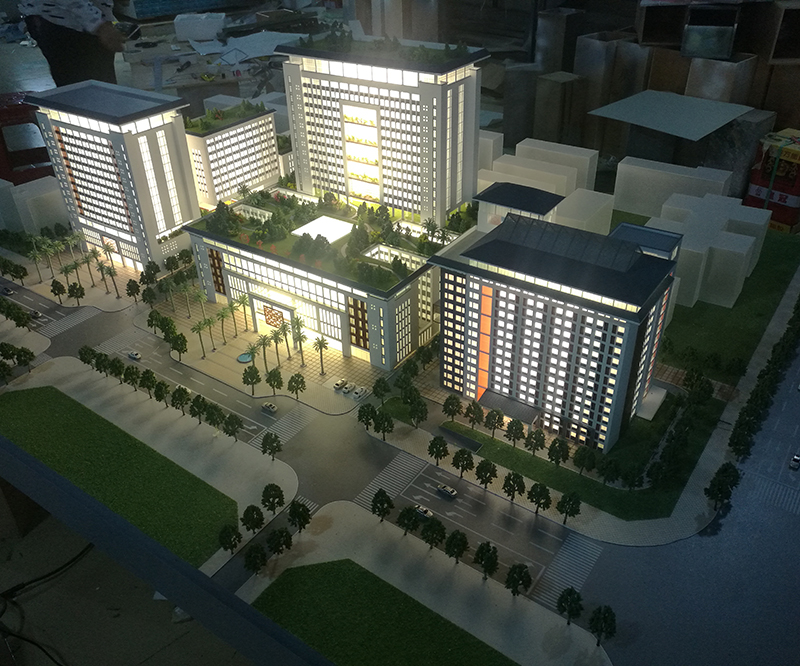 模型采用ABS等材料經(jīng)過CAD畫圖手工拼接、上色等制作工藝完成、并在模型內(nèi)部輔助LED燈光達到客戶展示要求